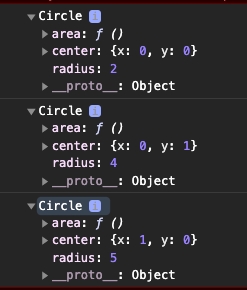 const c3 = new Circle({ x: 1, y: 0 }, 5.0);Circle 안에 면적을 구하는 area 메서드를 정의하였다. Circle 생성자로 생성한 인스턴스 c1,c2,c3는 같은 메서드를 포함하게 된다.