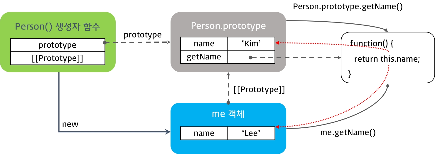 생성자 함수 방식 : 생성자 함수의 prototype이 가리키는 객체, 즉 Person.prototype