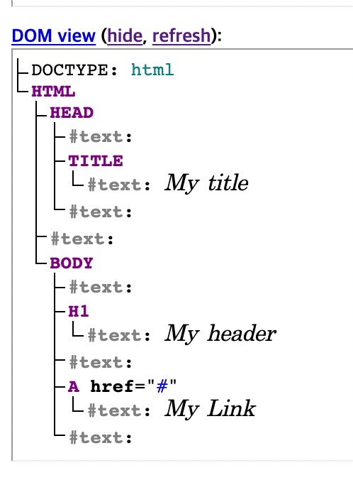 DOM์ ๋ํ๋จผํธ์ ๊ตฌ์กฐ๋ฅผ ๋ ธ๋์ ๊ณ์ธต์ ๊ตฌ์กฐ๋ก ์ ์ํ๊ณ ์๋ค.