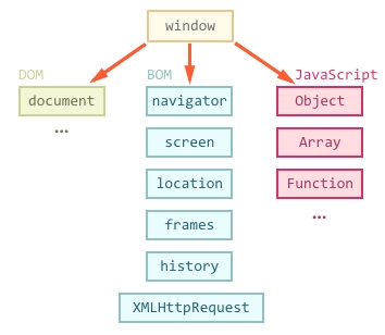 ์ ์ญ ๊ฐ์ฒด์ ์ด๊ธฐ ์ํ์๋ DOM, BOM, ๋นํธ์ธ ๊ฐ์ฒด๊ฐ ์ค์ ๋์ด์๋ค. ์ฌ๊ธฐ์ DOM๊ณผ BOM์ด ๋ฌด์์ธ์ง ์์๋ณด์.